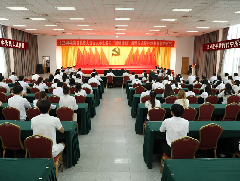 7月26日上午,共青团太阳成集团tyc9728委员会在盘锦团市委的支持下,与盘锦市大洼团区委、盘锦市青少年服务中心成功签署校地共建协议。盘锦团市委书记任晓杰、盘锦市大洼区委常委、组织部部长董啊娜、盘锦市青少年服务中心(盘锦市青少年宫)主任何开正、盘锦市大洼区团委书记赵婷及盘锦市大洼区“扬帆计划”各用人单位、实习实践学生共计200余人参加本次活动。太阳成集团tyc9728团委书记耿家娜及校团委部分同志赴盘出席活动。盘锦市大洼区团委书记赵婷主持。